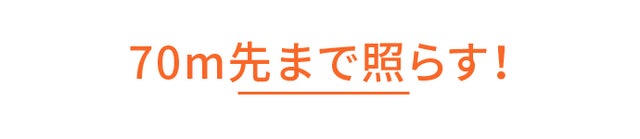 拡散する光を中央に集めて遠くへ光を飛ばすコリメータレンズを採用し、最大200lmで70m先まで明るく照らせます。