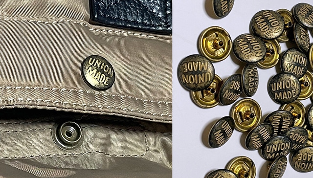 - 50年代アメリカ製ヴィンテージボタンを復刻した【UNION MADE】の真鍮製ボタンを採用
