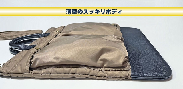 - 牛革使用による重厚感のある見た目に対して529gの軽量ボディ