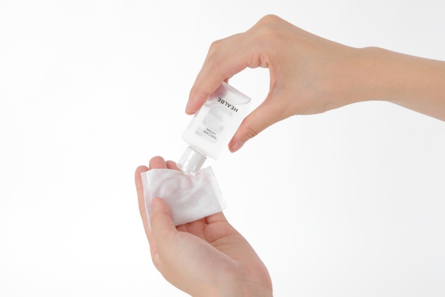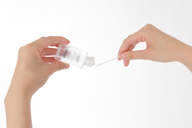 適量を綿棒やコットン、ティッシュなどにしみ込ませて耳の汚れをふき、残ったローションをやさしくふき取ってください。