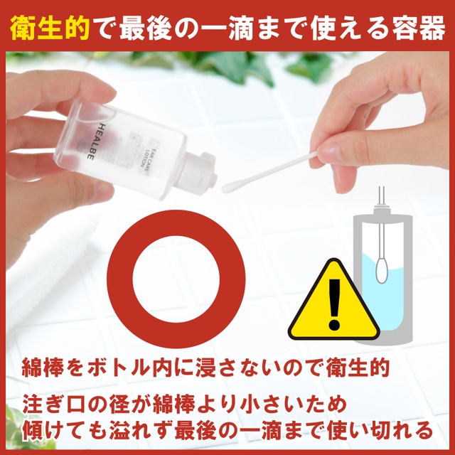 綿棒をボトル内の液体に浸さないから衛生的です。