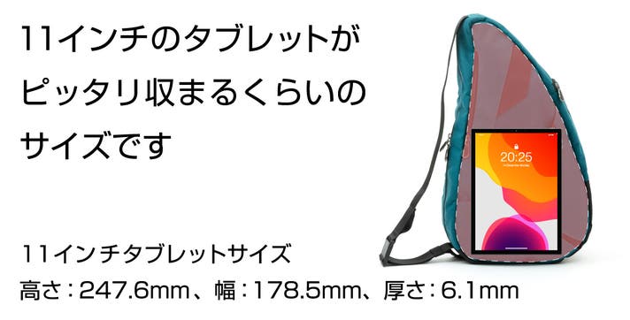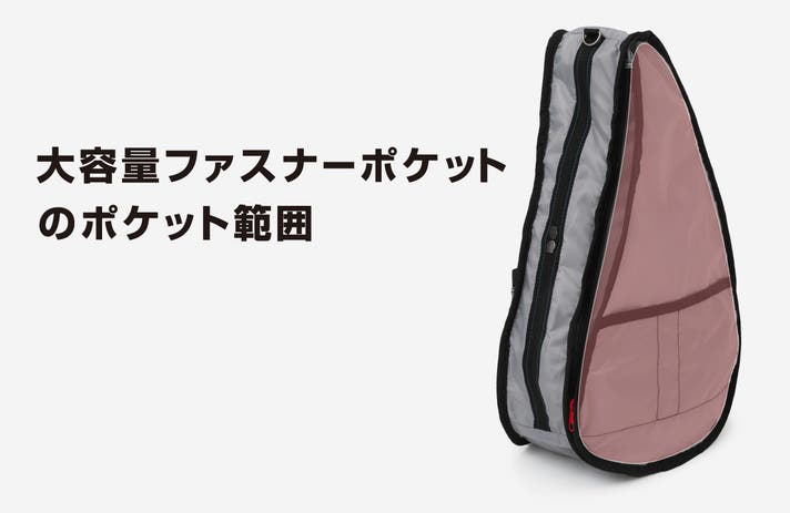見た目にもユニークな「しずく型」フォルム。この形が、身体にぴったりフィットする人間工学設計の秘密です。バッグを肩に掛けると、背中のラインにぴったりフィット。重さは肩・背中・腰の3点に分散します。身体に触れる面積が大きいほど、バッグを軽く感じられ、荷物が揺れにくく、長時間の使用でも肩や腰の疲れを感じにくくなります。