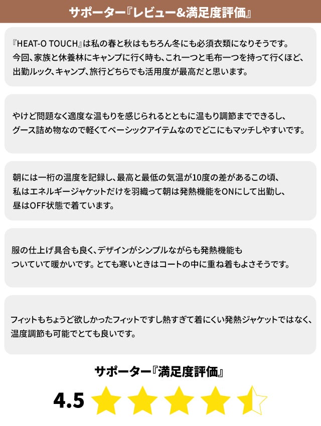 スリムなフィットでも十分暖かいアウターの『HEAT-O TOUCH』です。