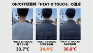 ただし、ジャケットの裏地の内部にあって、実際に着用した際は服と体の間の距離、中のインナーとして着た服によって体が暖かくなると感じるほどの温度です。
