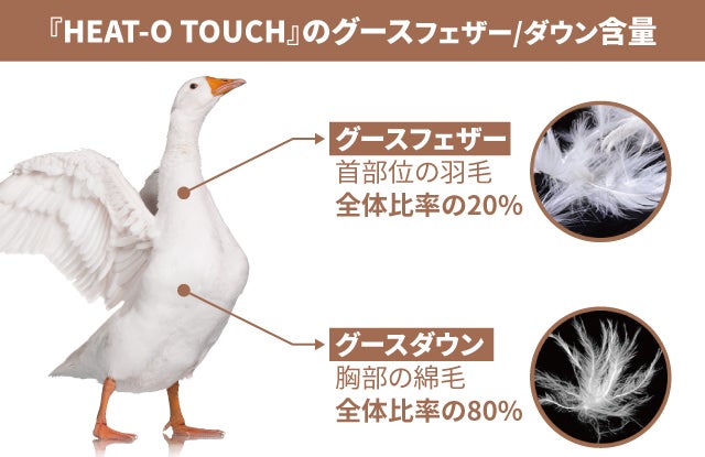 それだけでなく、『HEAT-O TOUCH』は保温力の高いグースの羽毛に作られました。