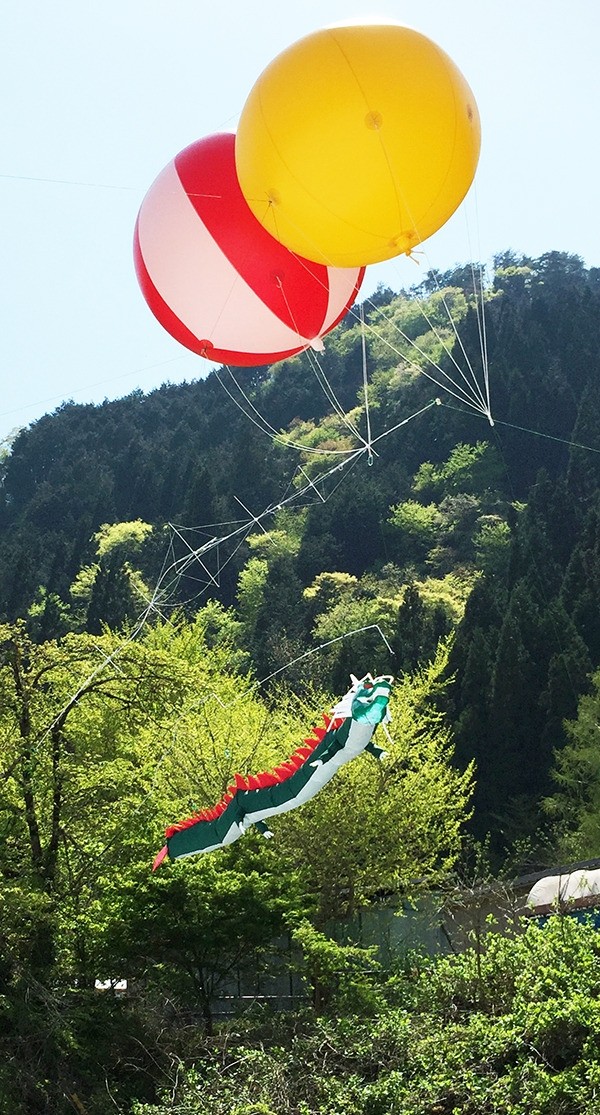 今まで各地で開催をしてきましたが、その中でも年間を通して極めて風が弱くフライトに最適な郡上の「昇竜会場」で新ウィンチシステムにより最高高度170mまでのフライトも可能になりました。(170mのフライトは、オプション料金が必要です。)