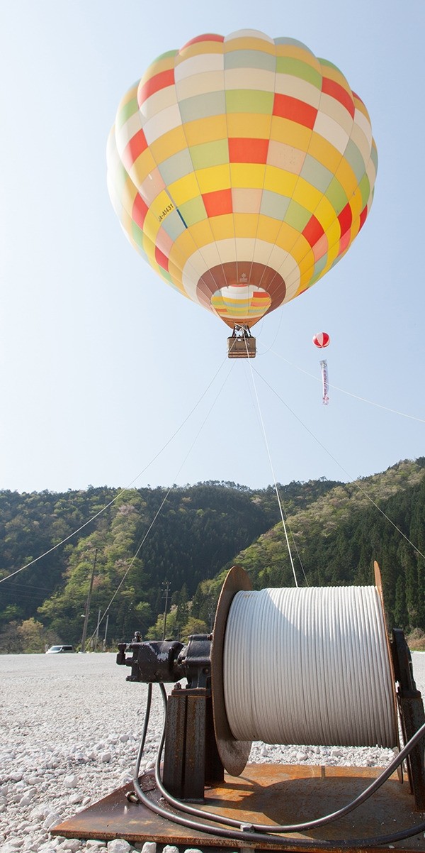 日本では通常30メートルの高さまでのフライトがほとんどですが、新しく開発したウィンチシステムを導入し、より高く(通常100m)、風に強くなり安全なフライトが可能になりました。