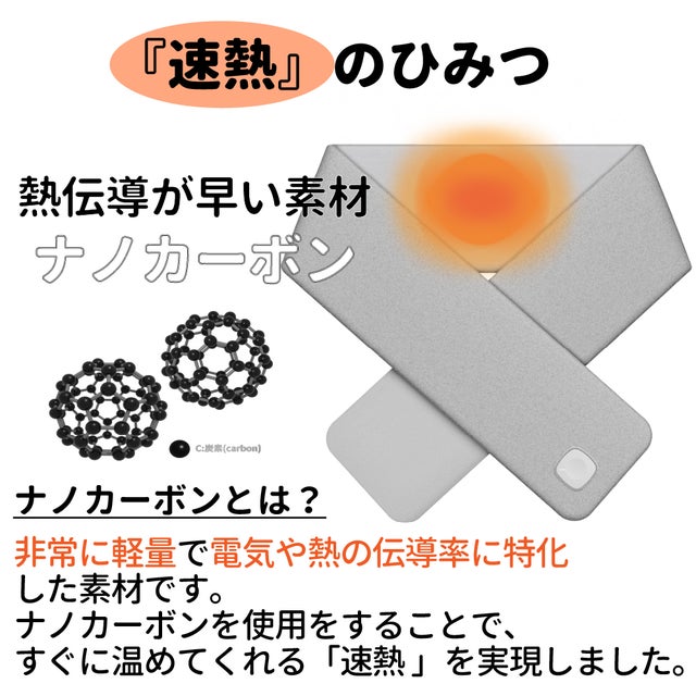 - たった10秒で温まる「速温」ナノカーボンのパワーで寒い季節も温かに