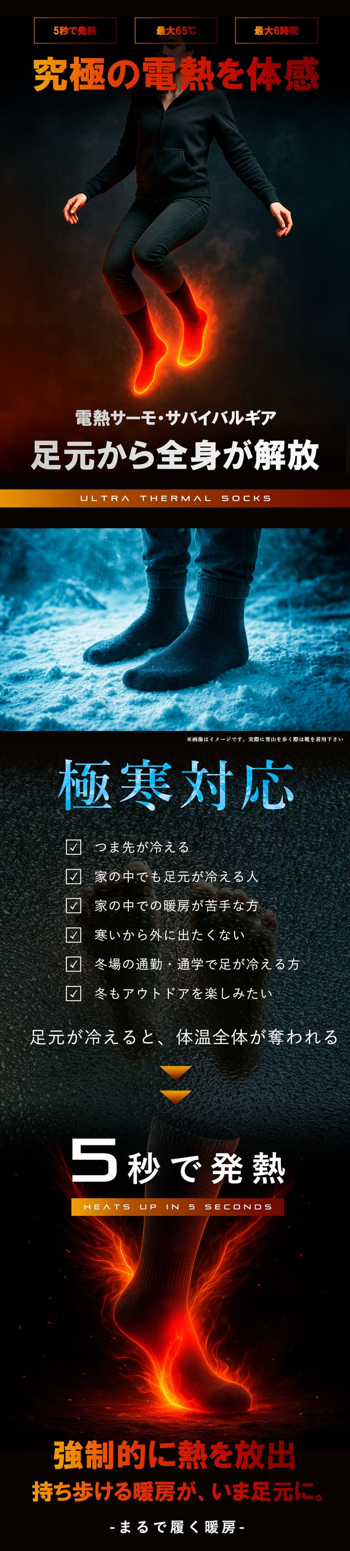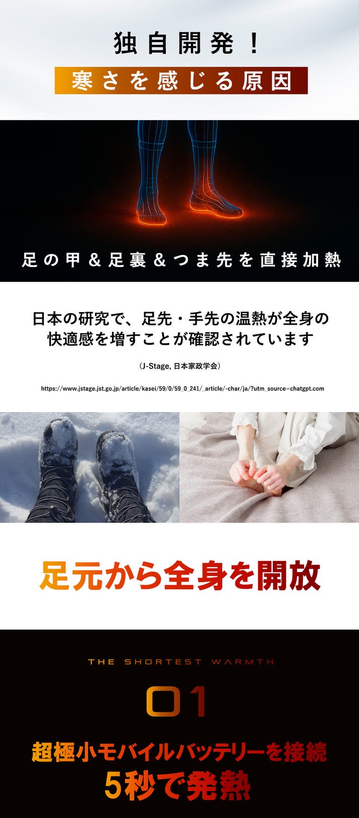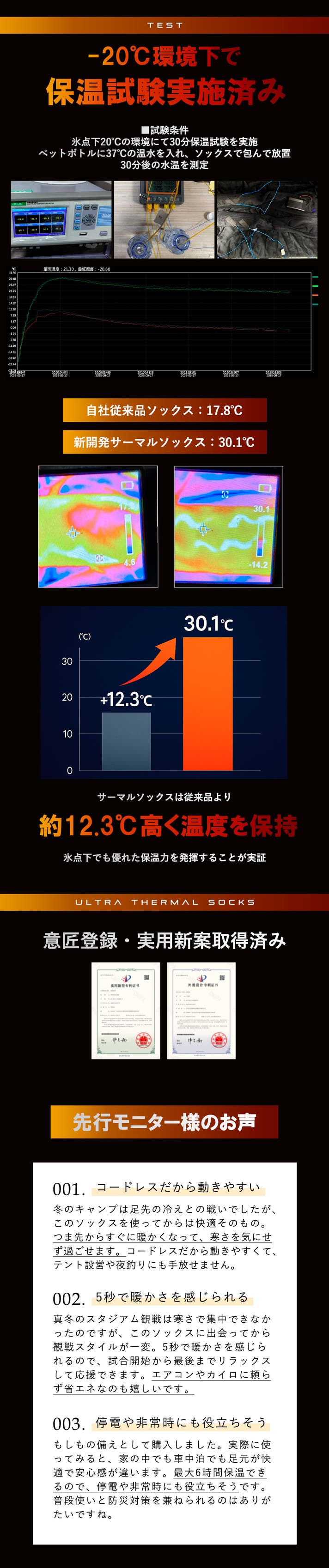 - わずか5秒で即発熱!セパレート式設計でどこでも快適【次世代サーマルソックス】