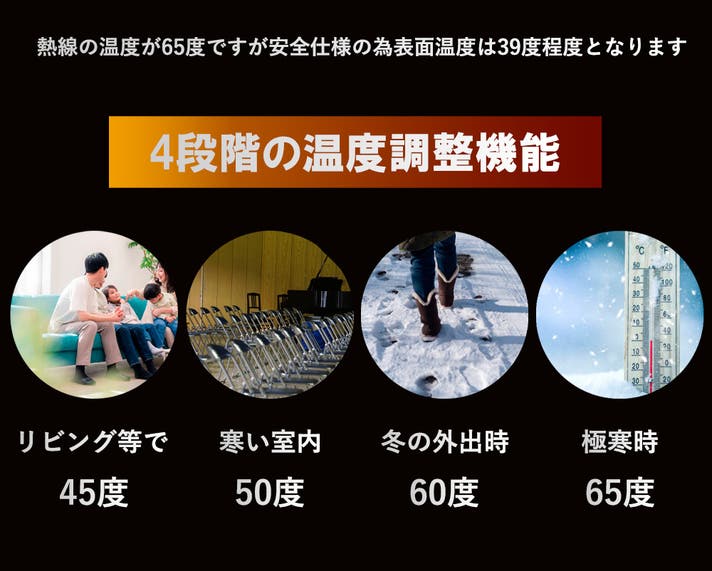 ・使用中に特定の部分が異常に熱くなる場合、発熱線のショートの可能性があります。すぐに使用を中止してください。