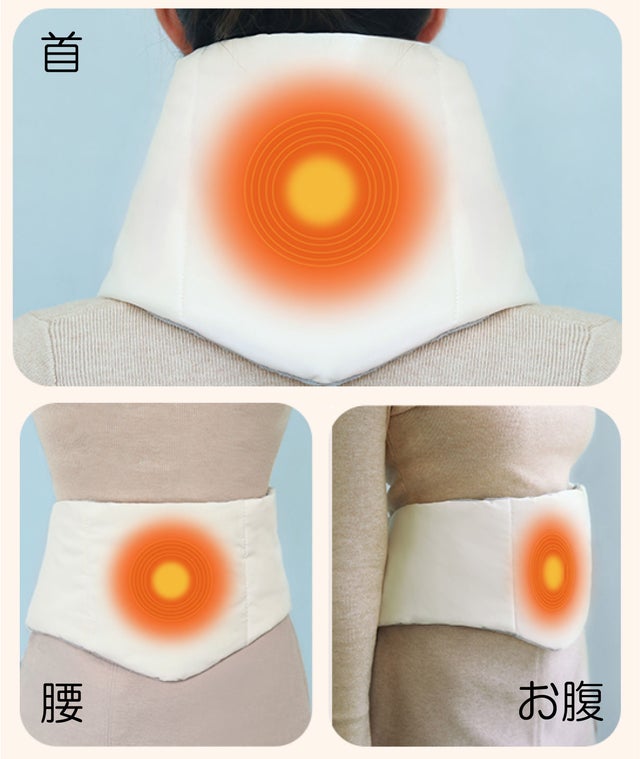 - 拡大した発熱面、首にもお腹にも腰にも幅広く利用できます!