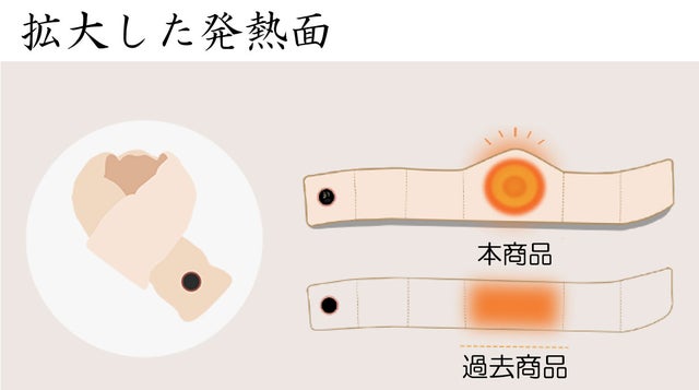 弊社の過去商品より発熱面を拡大し、首にもお腹にも腰にも必要に応じて幅広く使用することができます。