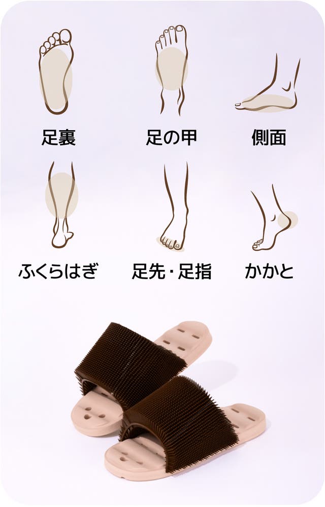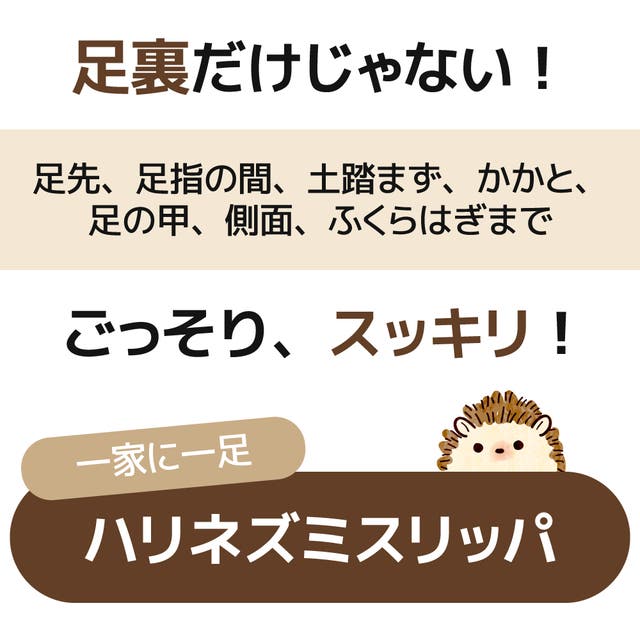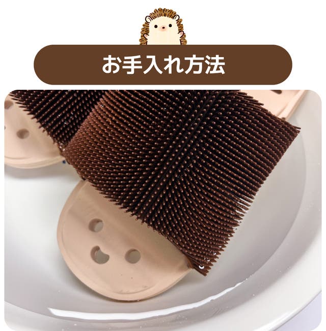 ハリネズミスリッパは名前の通り、ハリネズミのような構造で足を隅々まできれいに洗えます。