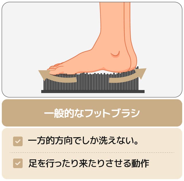ブラシで足をこすって洗う時にブラシが足を洗ってくれる役割もしますが、足がブラシを洗ってくれる役割もします。