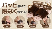 - 履いたまま隈なく細部まで洗える!洗うのが大変な足の先や甲や裏、かかと、側面、ふくらはぎまで。