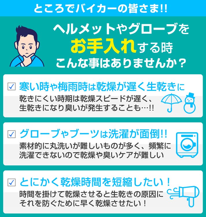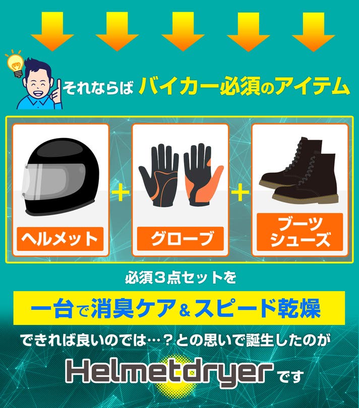 - ヘルメット乾燥機第2弾!お客様の声にお応えして今回は消臭&乾燥特化型のドライヤーが誕生!
