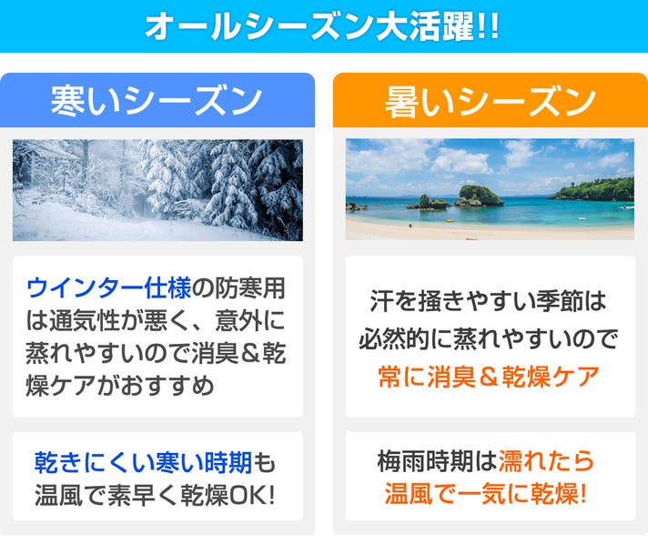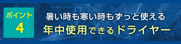 汗を多く掻く暑いシーズンはもちろんですが、温風乾燥ができるので寒いシーズンの使用もおすすめします!季節問わずご使用いただけるドライヤーです。