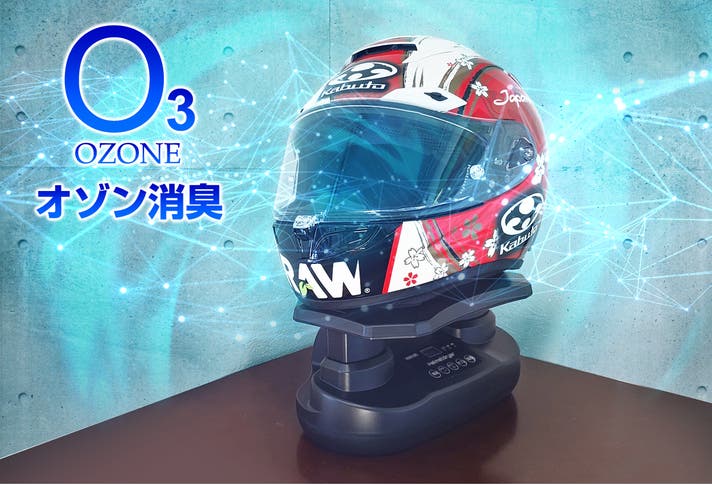 オゾンの性質を利用した消臭方法は、地肌に触れる事の多いヘルメットやグローブには最適な方法です。