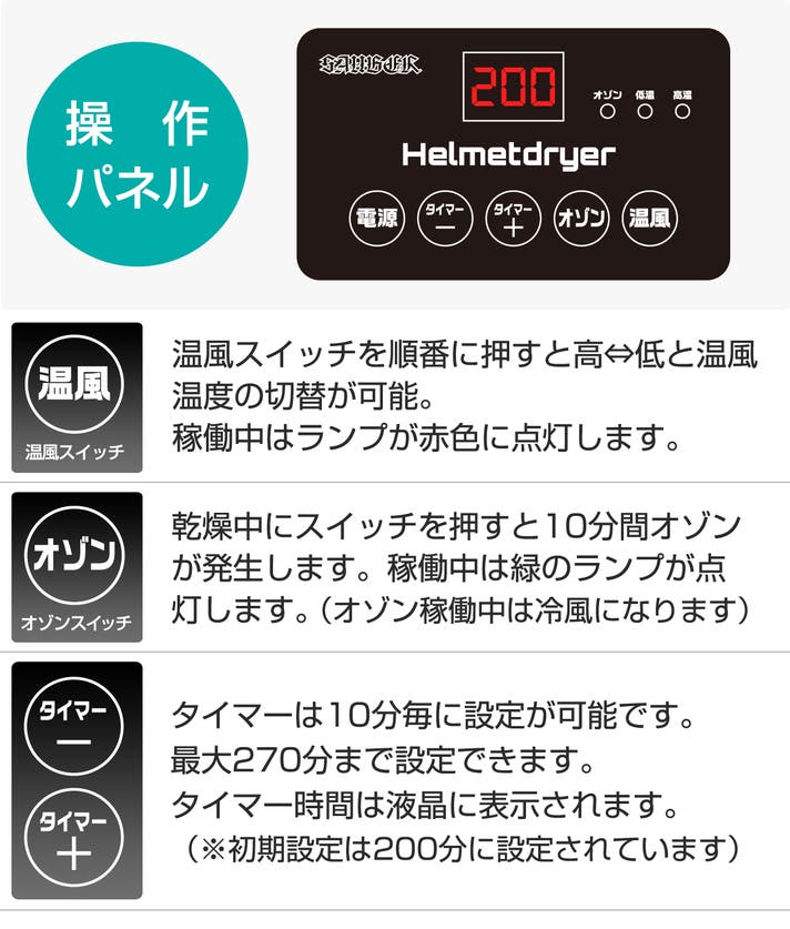 ・タイマー:10~270分(10分刻み)