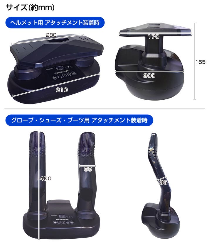 ・アタッチメント付属(ヘルメット用/グローブ・シューズ・ブーツ用)