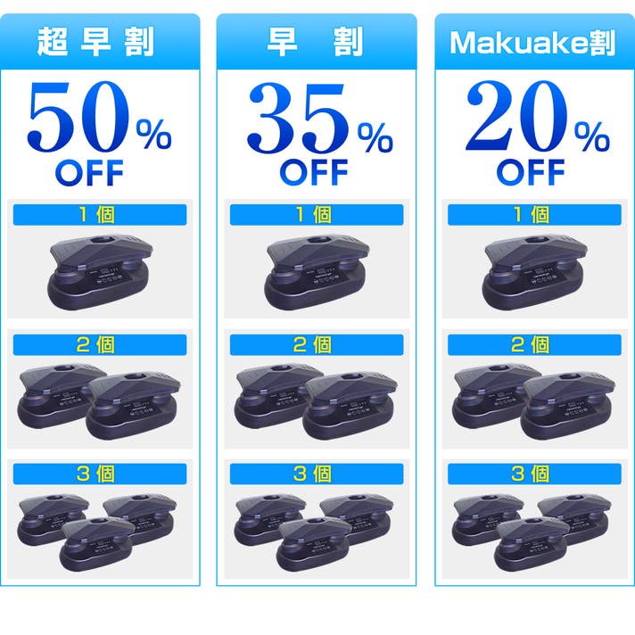 「超早割」「早割」「Makuake割」の3種類です。