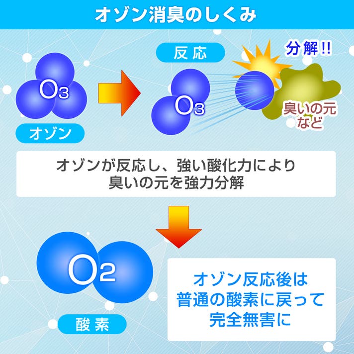 オゾン発生器が搭載されており、オゾンの力で臭いの原因となるにおい成分を分解して消臭効果を発揮します。頻繁に丸洗いができないアイテムのケアに最適です。