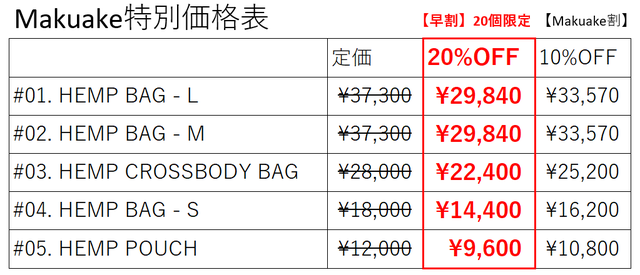 01. HEMP BAG - L【早割】先着20個限定価格
