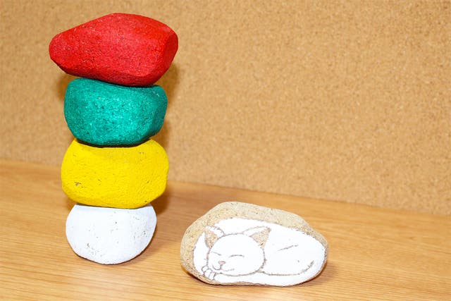 見た目は河原の石のようですが、丈夫なのにとても軽く、万が一ぶつかっても怪我をしにくい製品となってます。