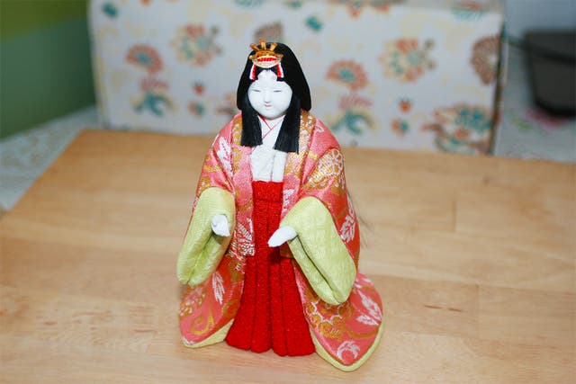 胴体の木地に筋目をつけ、そこに衣装地を木目込んで作られた ことから「木目込人形」とも呼ばれました。