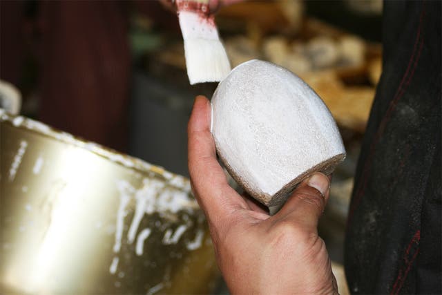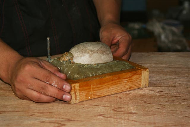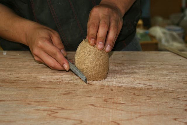 原型から型枠を作り、桐塑を詰め入れ原型と同じ形に成形。