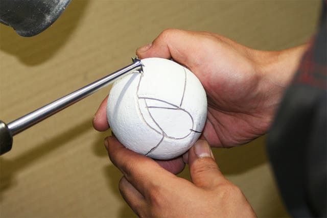 乾燥した本体のバリを削り取り、全体の微調整を丁寧に行う。