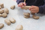 ランダムになるよう職人の手で微調整しながら取り出し、河原の石のような形の積み木を作ります。