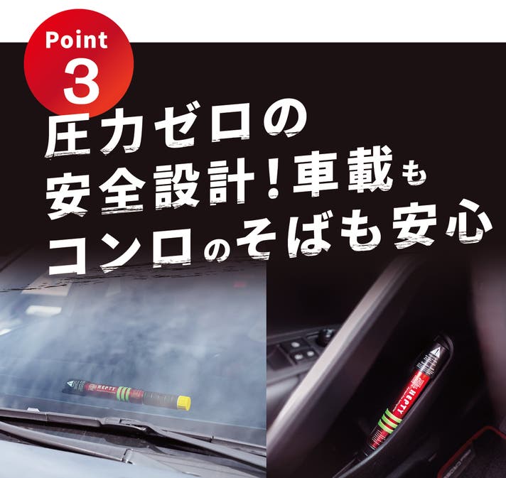 - 【安全設計】無圧磁力起動で暴発を防ぎ車内でも保管可!生物学的な非毒性試験合格、人体や環境に無害