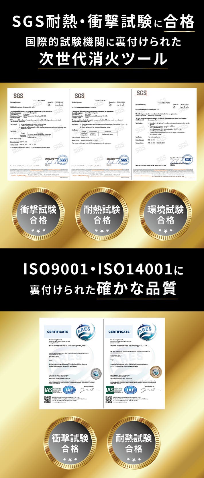 この製品は、自動車やバイクの高温と振動に最適化されており、専門的な訓練は不要です。直感的な操作性を備え、火災による被害を最小限に抑えながら、避難のための貴重な数秒を確保します。