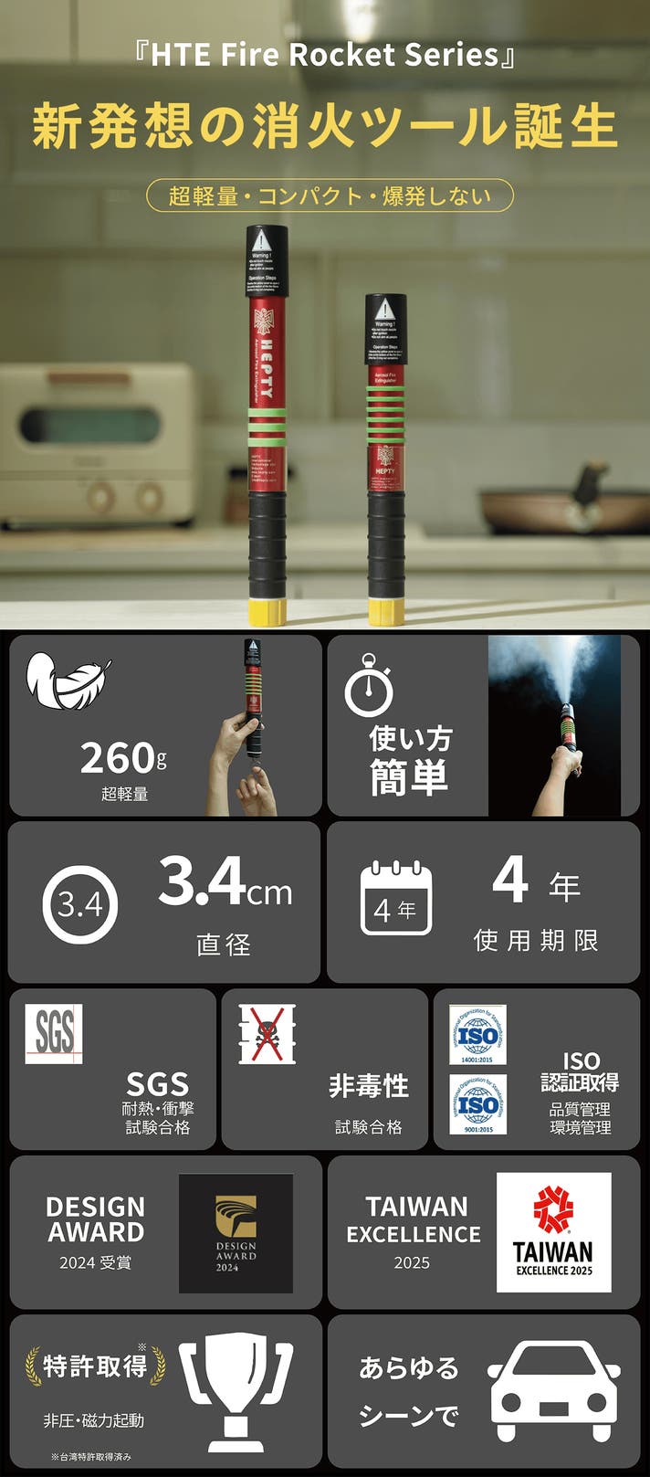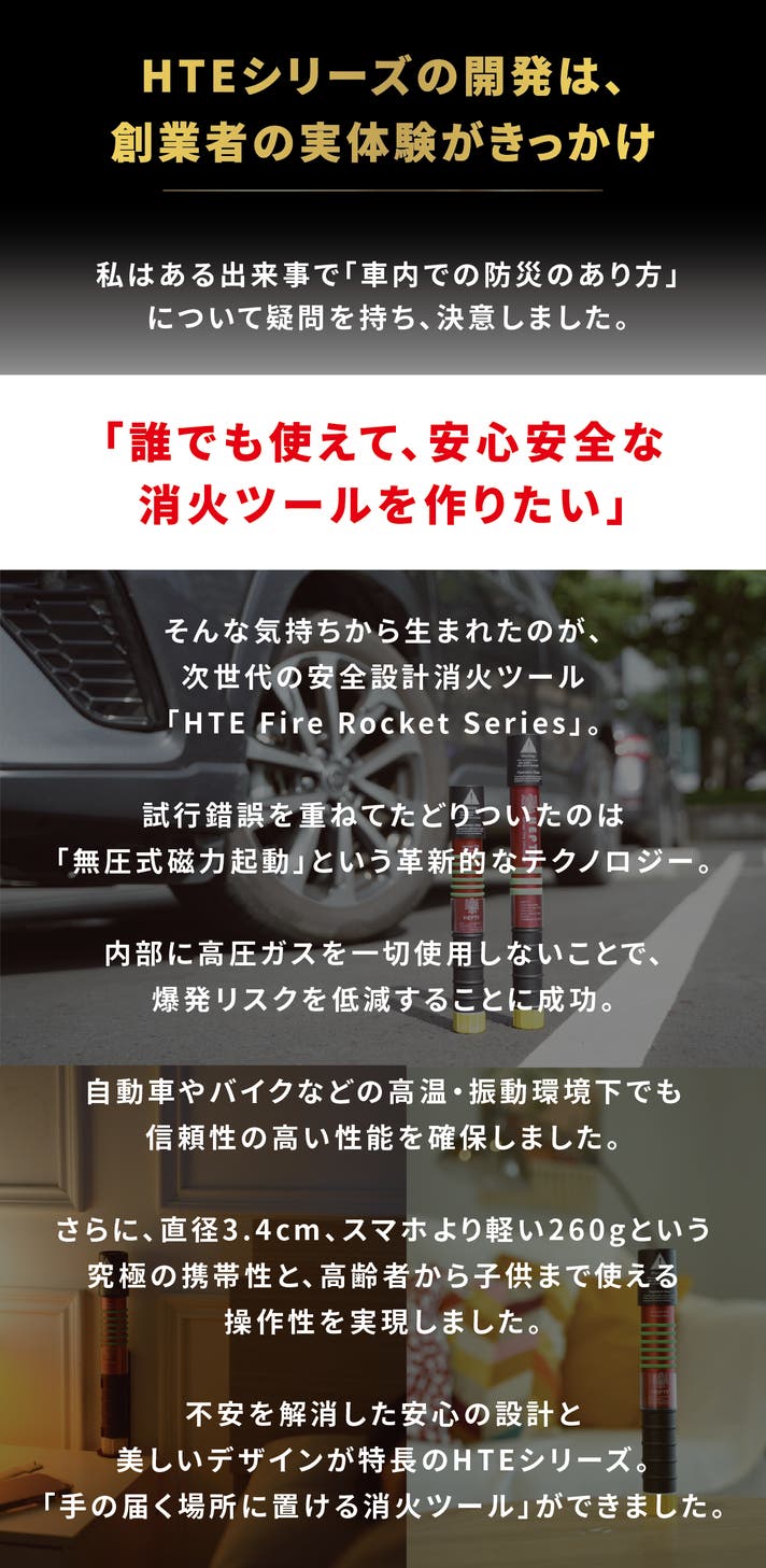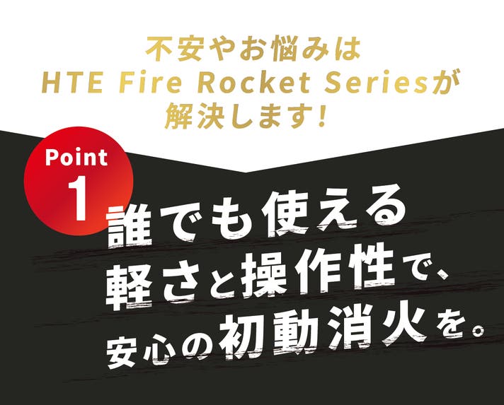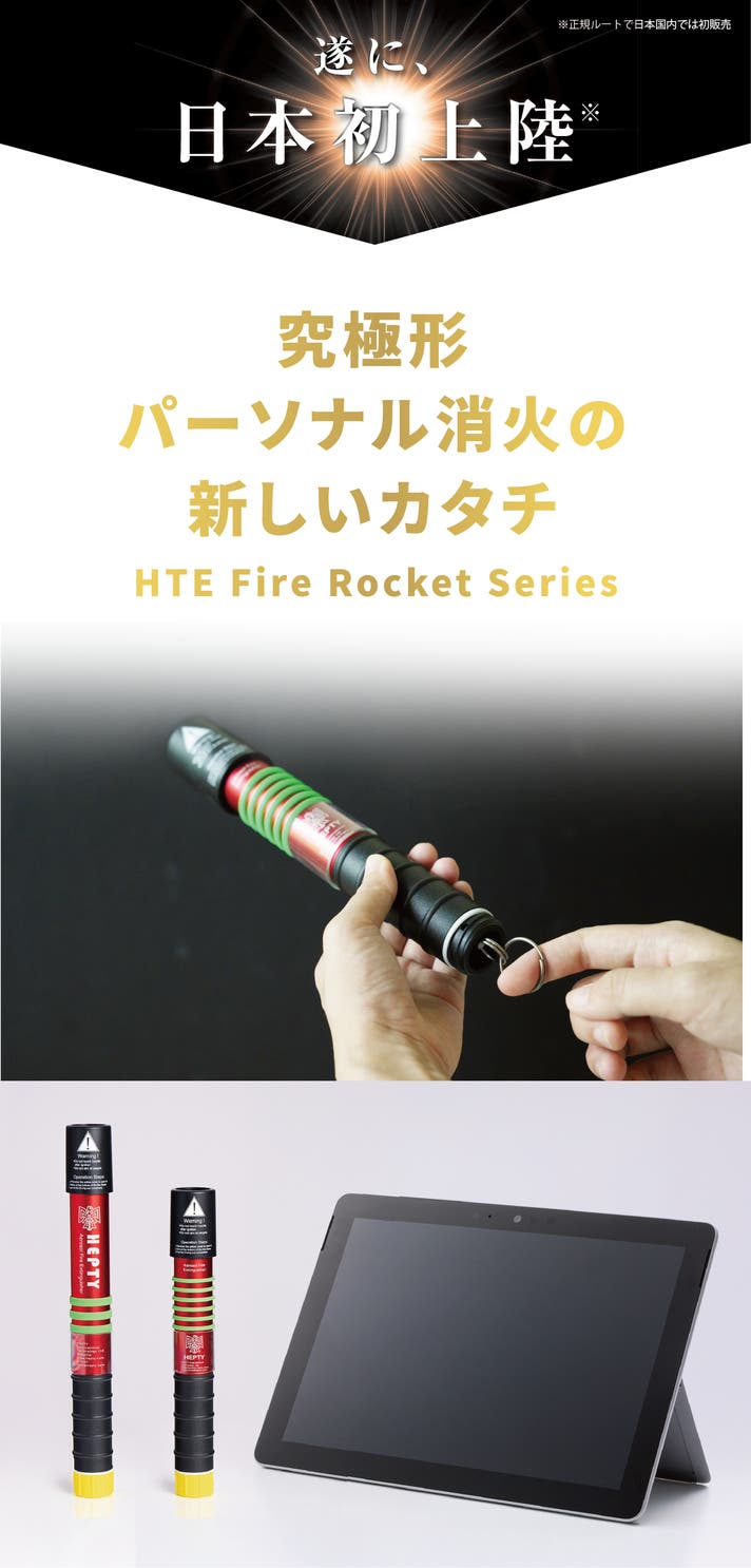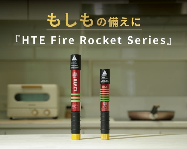 「火災発生から2分※」の一瞬のために、あなたのそばにHTE Fire Rocket Seriesがあります。