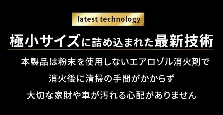独自のエアロゾル技術により、火災の化学連鎖反応そのものを遮断するため、初期段階の火には短時間でも効果的に作用します。