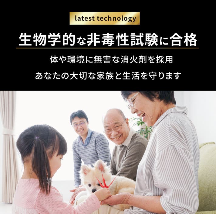 非腐食性・非導電性で、精密機器による電気火災の場合でも安心です。(スマホやパソコンからの出火に使用してもデータが消えにくい、など)