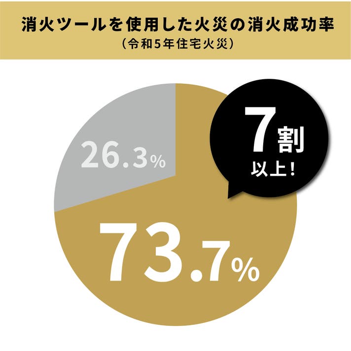 消火器具が使われた際の消火成功率は約7割以上とされています。