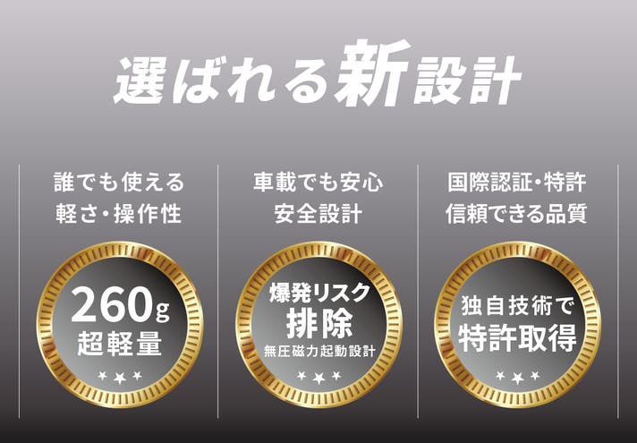 無圧式磁力起動システムで高温・衝撃試験クリア、車内保管も可能な革新防災ツールがついに日本上陸!(※正規ルートで日本国内では初販売)