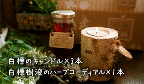 白樺キャンドル3本とコーディアル1本セット