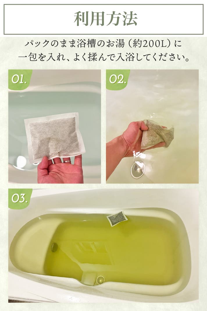 ハーブよもぎ薫る湯はパックを湯船に10分間つけるだけ。