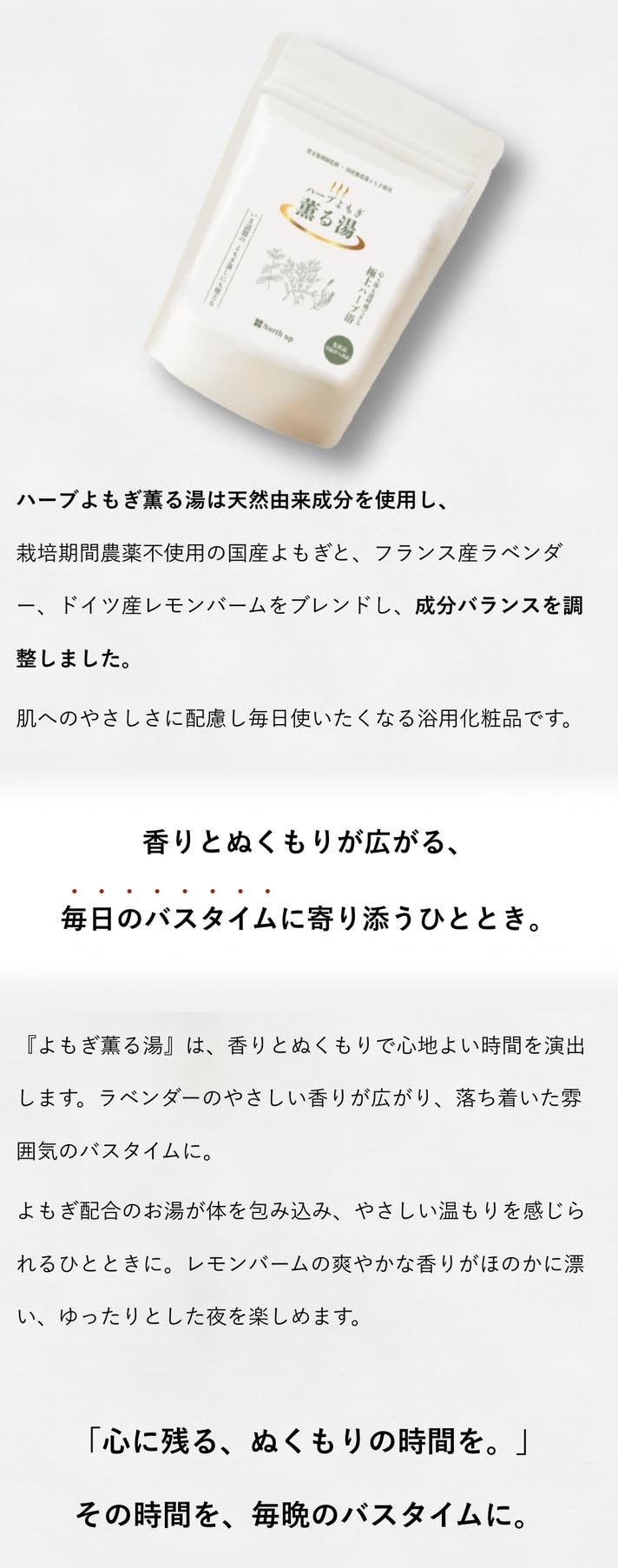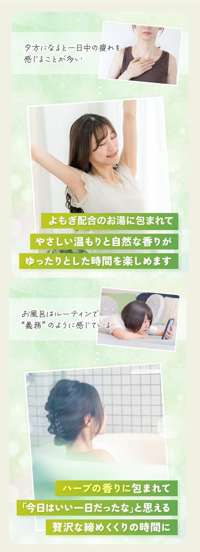 よもぎ湯やハーブ湯特有の煮出しが不要な商品になっています。