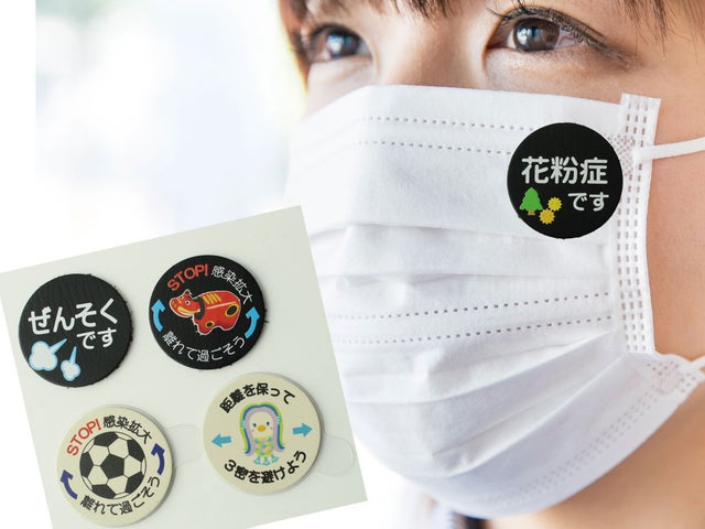 - マスクにワンポイントで自分の状況をお知らせできるシール