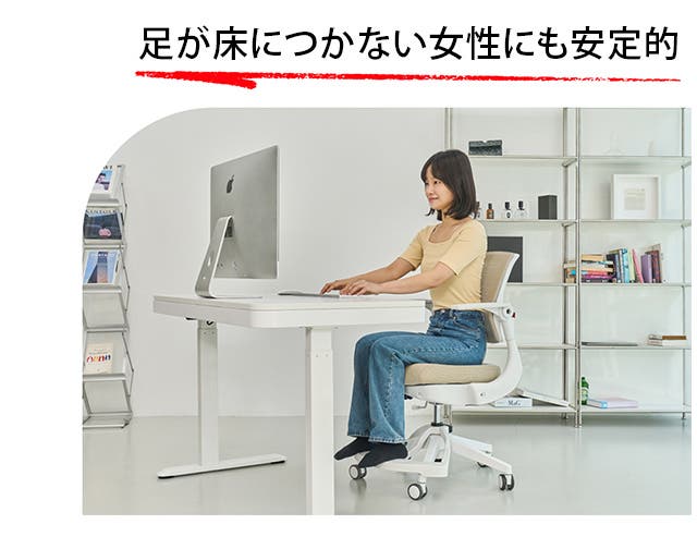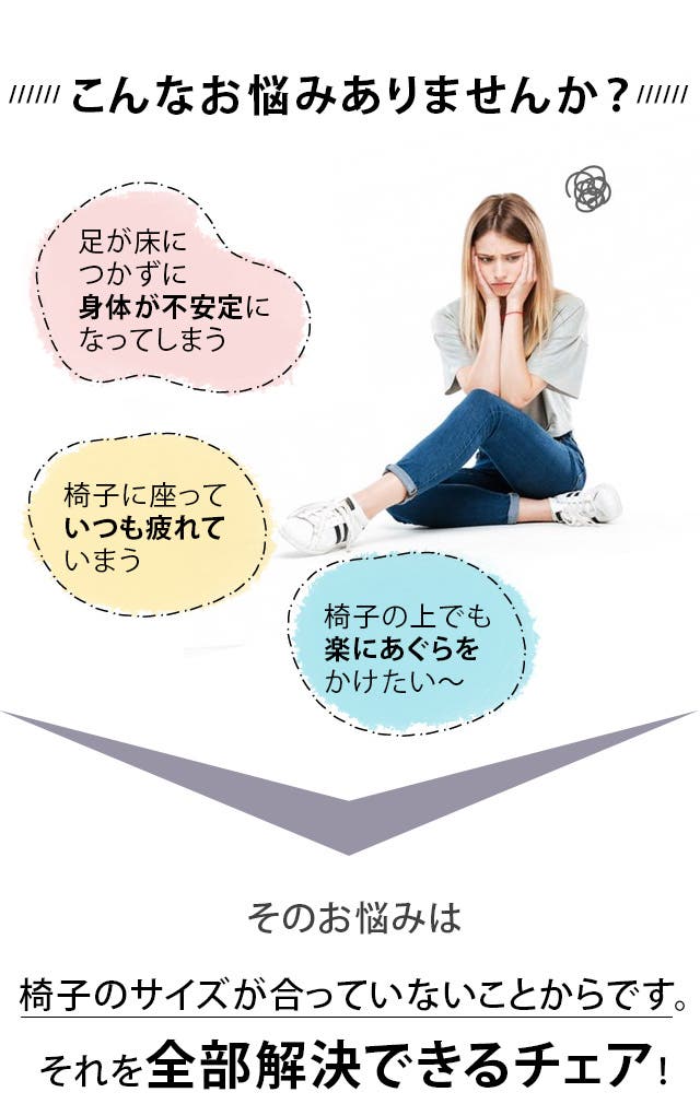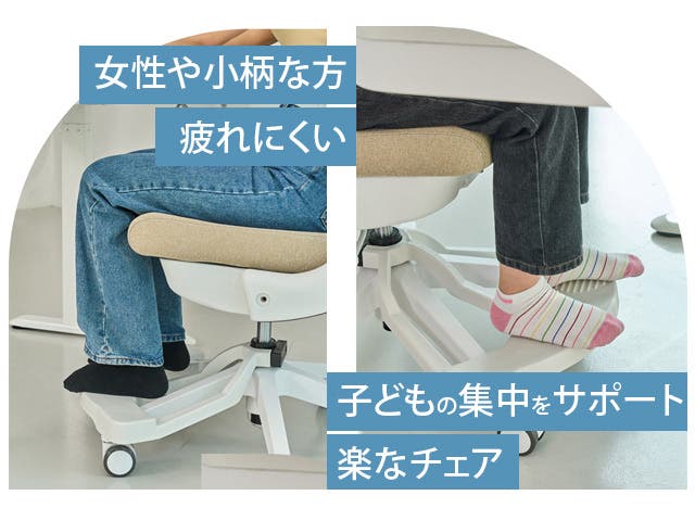 - 足が床につかずに身体が不安定な女性や小柄な方に快適な疲れにくいチェア!