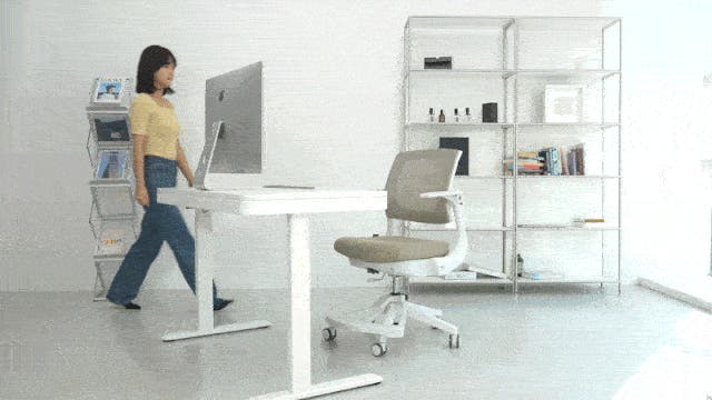 肘掛けが机に当たってしまいコンパクトに収納できない時、肘を跳ね上げてデスクにスッポリと収納できます。