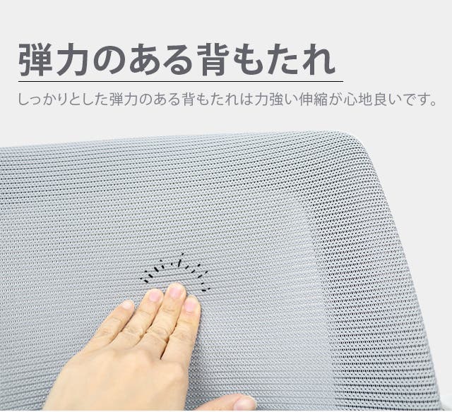 背もたれは通気性の良いメッシュを採用。夏、暑い季節にも蒸れずに爽やかにお使いいただけます。
