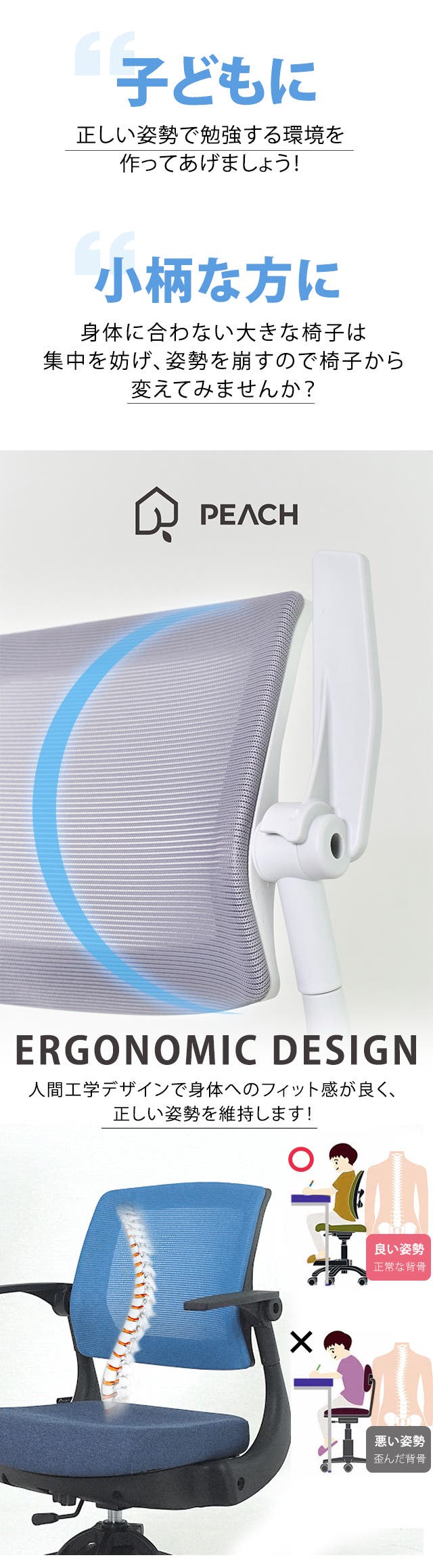 早く成長する子どもと小柄な方に必ず必要なチェア!小学生から大人までお使いいただけます。