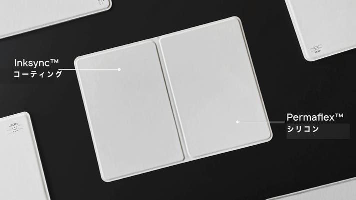 HEYfoldは“ツルツルすぎない”独自の表面素材(Permaflex™シリコン+Inksync™コーティング)により、紙のようにスラスラ書けて、何度でも消せるのに、インクはしっかり乾いて定着。書き直しても劣化しにくく、長く美しく使えます。