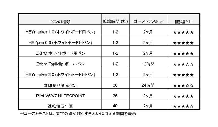 ※※HEYfoldは多くのペンに対応していますが、すべてのペンで書き込み・全消去を保証するものではありません。ご使用前に付属の「ペンテスター」で必ずインクの互換性をご確認ください。