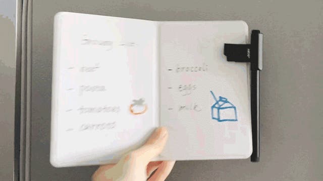 HEYfoldには、ページの端にマグネットが内蔵されています。ホワイトボードや冷蔵庫、金属デスクやロッカーにピタッと貼れるほか、ペンもマグネットでスマートに装着。もう迷子になりません。